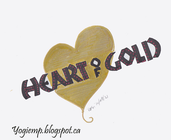 "Heart Of Gold" On Staples 110# white cardstock drew the heart using a gold gel pen. Wrote out the words with a 4.5 Parallel pen with Sumi ink in Neuland style. Added dots with an Artistro red extra fine tipped pen. |