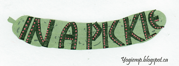 Date: Sept 16, 2021 "In A Pickle" On Staples 110# white cardstock painted the pickle with Artistro Brush pens. Wrote out the word with a 3.0 Parallel pen and Sumi ink. Added red dots with Artistro Extra Fine pen. On Black: Stillman & Birn NovaTrio paper. wrote out the words with a 3.0 and 6.0 Parallel pen and (fresh jug) Clorox. Highlighted with a white gel pen. I love the look on the black which doesn't show properly in the photo. It actually has a beautiful mottled beige aged look...