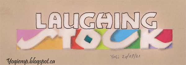Date: Sept 20, 2021 "Laughing Stock" Staples 110# white cardstock with a 2.4 Parallel pen and Sumi ink wrote out the words. Colored with Artistro Extra Fine pens. On Beige: Stillman & Birn NovaTrio paper. wrote out the words with a 3.0 and 6.0 Parallel pen and (fresh jug) Clorox. Outined the 1st word with a Micron pen. Colored the 2nd word with the Artistro brush pen ad shadow with graphite and paper stump. |