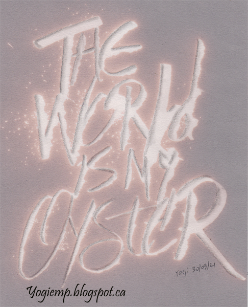 Is My Oyster Size: 6.5"w x 9"h Again the color is wrong... It's warm grey with a beautiful warm glow. On Stillman & Birn Nova Tria grey paper using Clorox and a Brody pen wrote out the words. When dry shadowed with graphite pencil ad paper stump.