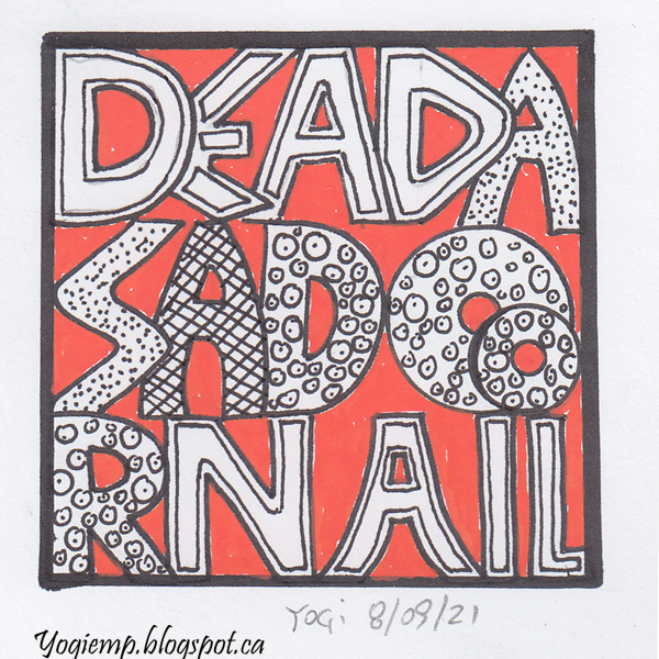 Date: Sept 8/21 "Dead As A Doornail" On Staples 110# white cardstock drew the Neuland style letters and doodled the insides using a Micron pen. |