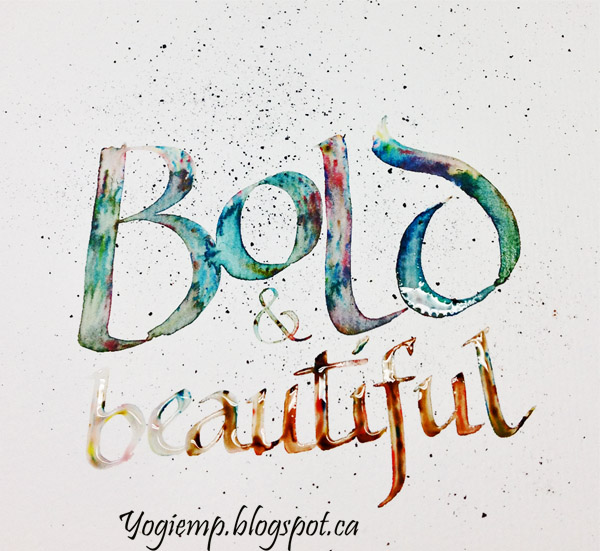 With the balance of the powders from the above experiment, and on the same paper, wrote the word "BOLD" using The #8 w/c brush. The ampersand with a Zebra G nib and the "Beautiful" with the Mitchell nib. There is still a bunch of powders to use for another piece. I'll add a touch of yellow because it's getting too blue for me. |