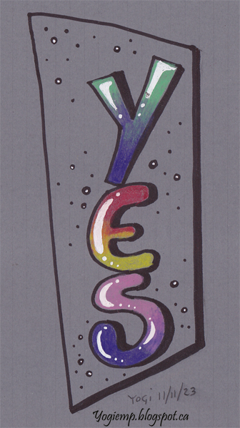 2023 I recently purchased the 100 set Faber-Castell Black Edition colored pencils specifically created for black paper from Kensington Art Supply here in Calgary. They really are great. Creamy. I created this on Rhodio Pascribe's Grey calligraphy paper. I forgot I had it... but was looking for something else and said yes to trying with the Black Edition. They work beautifully on that paper. Not so much my Sharpie pen... it bled through to the next page - sigh! The lettering glows in real life - not so much in the image. As mentioned a Sharpie fine point tip for all the black stuff and a Uniball Signo white gel point for the highlights. And I just noticed the Sharpie has 2 ends fine & ultra fine... go figure I never realized that. ROFL.