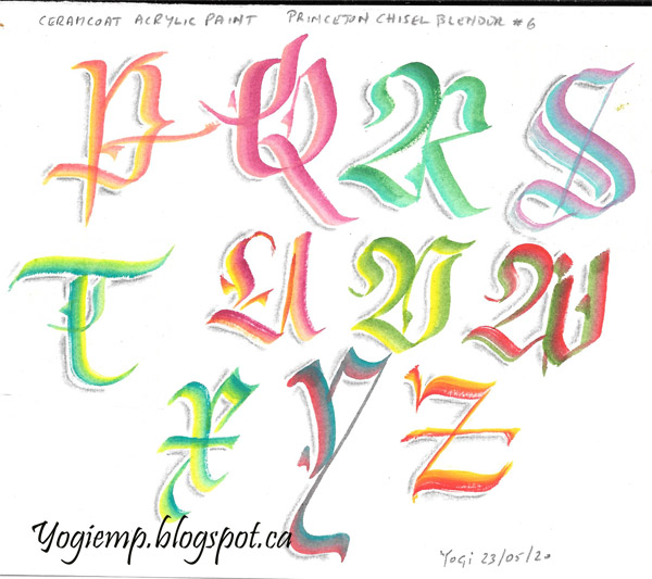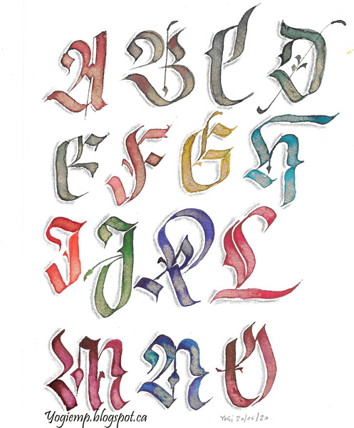 Each time I see one of the letters written by "parissurteil" on Instagram, I say to myself I have to play... and I finally did... Love his brush blackletter caps. I'm not creating all the letters from the same family, but rather the ones I like best - so it's a mismash of styles. |
