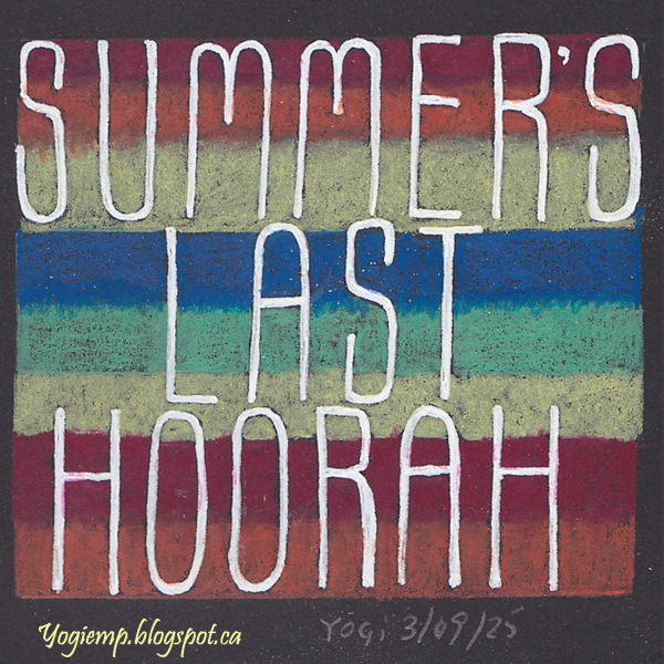 size: 4"sq On Stillman & Birn Nova Tria Mixed Media black colored my with Prisma colored pencils. White gel pen for the lettering. Since I didn't like the look so much went over with W/N white Calligraphy Ink. words: Summer's Last Hoorah