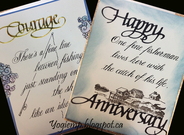 Created: June 11, 2018 As I mentioned recently I took a Copperplate class with Paul Antonio... And our Guild is looking for stuff about "fauna" for our next journal... so I created these two cards. Did the calligraphy using a Nikko G nib and Sumi ink on calligraphy paper, trimmed down and adhered to my card front. My cardstock bled... so had to improvise.. I'm using an A Way With Words dies "Courage" and "Happy Anniversary" 2pce set from Elizabeth Craft Designs, also available on Quietfire Design HERE and HERE