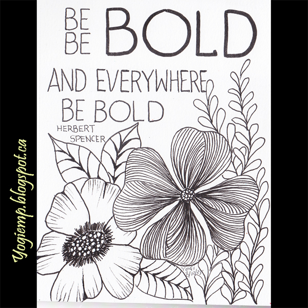 size: 6"h x 4.5"w On Canson Mixed Media paper created the design with a ZIG Writer. Lettering done with the Zig Writer and a black Staedtler Calligraphy Duo pen. words: Be Bold Be Bold and everywhere be bols