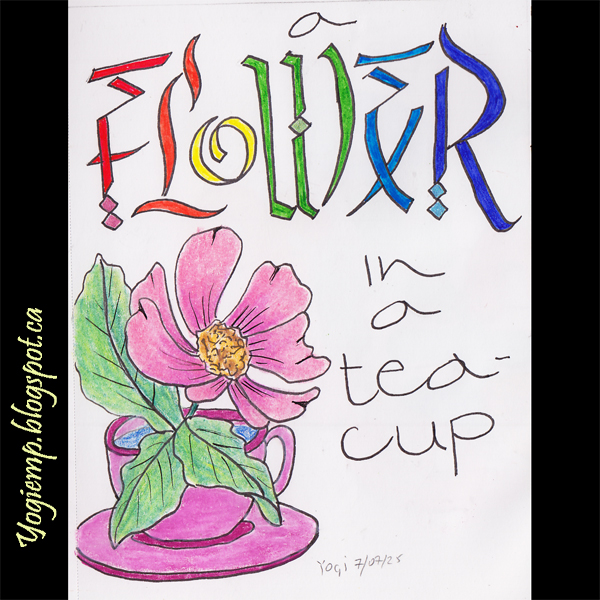 size: 6"h x 4.5"w I was playing with this flower... boy that's a lot of pink!! On Canson XL Pen &Ink Paper using metallic Prisma colored pencils. Lettering a la Lisa Engelbrecht style using Pentel Arts Fine Point Color Pens words: A Flower In A Teacup |