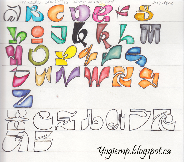 2022 A friend made me aware of Mykolas Saulytis's funky lettering exemplar and I had to play with it... As much as I LOVE funky lettering I also need it to be readable... so I altered a few of his letters (H, J, K, U, V, Z). I also found a few more that was similar to the alphabet. I changed a couple of those as well... Outlined with a ,08 Micron in my Bee Super Deluxe journal and painted with Peerless watercolors. I don't use them enough and they have such beautiful vibrant colors... |