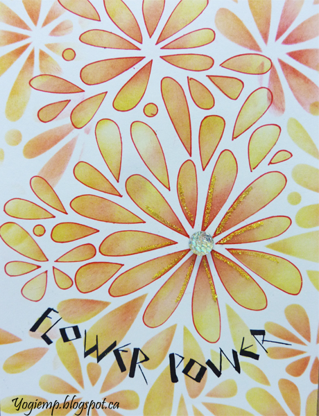 (using a Crafter's Workshop "Petal Splash" 12 x 12" stencil) Distress Oxides. Glue pen and glitter, Parallel Pen |