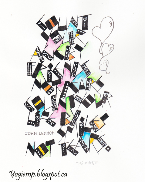 2022 Our Guild is having an exhibit at the Fish Creek Library here in Calgary from Oct 30 - Nov 27, so I created this piece for it... of course using Funky Neuland BIG GRIN. On Bee Super Deluxe paper wrote out my words with a 6.0 Parallel pen and Sumi ink, interlocking the letters wherever possible. Added doodling with a pointed nib and Bleed Proof white ink. Also added some watercolor areas. Words: Count your age by friends not years. Count your life by smiles not tears. John Lennon |