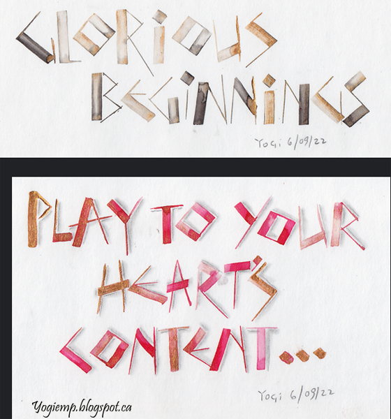 Dipping a 4.5 Parallel pen filled with Sumi ink into Gansai Tambi "Starry Colors "Red Gold". I LOVE the effect it gives which doesn't show up in the image... |