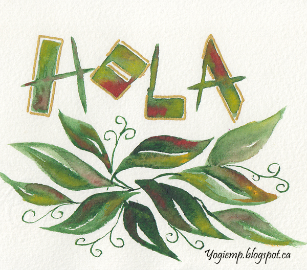 Winsor & Newton Sap Green touched with Cadmium Red and a bit of Cadmium Yellow. Uniball Signo Gold gel pen outline. |