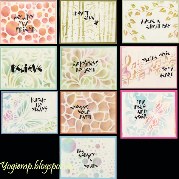 2022 I had an urge to play with my stencils... so I went through them all and pulled out a bunch I thought would work nicely with the Funky Neuland lettering... This batch is all landscape mode. click HERE to see the Portrait mode ones I made. All done on Genoa bond calligraphy paper , trimmed down and adhered to a co-ordinating colored cardstock. Now ready to adhere to a blank greeting card... Using Distress pads and lettering with a Parallel pen and Sumi ink. |