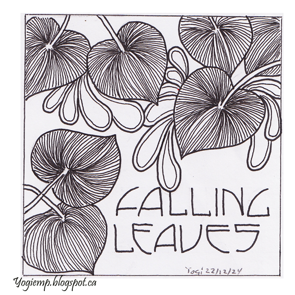 size: 8" sq On Edge Mixed Media paper drew my leafy design using a Juice Up pen. The rest of the design with a 0.5 Faber Castell black pen. Lettering done in "Golden Typeface WIP" words: Falling Leaves |