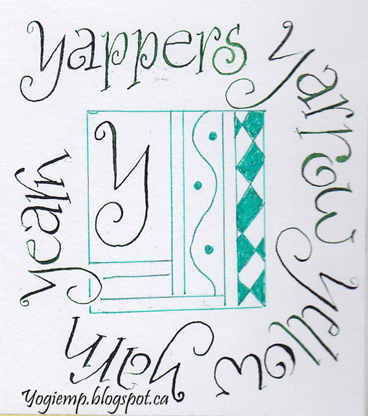 ID: wk 25 - y (yappers) Pointed pen, Ecoline ink, doodling