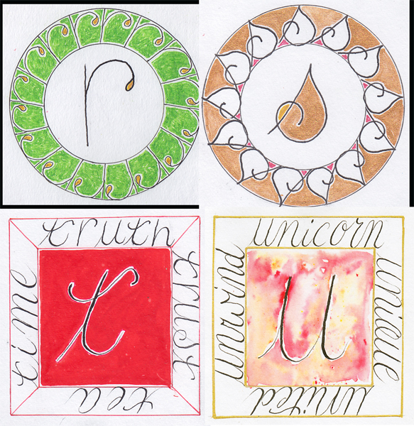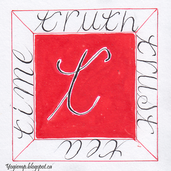 ID: wk 20 - "t" (truth, trust, tea time) Pointed pen, Sumi ink, watercolors, gel pen |