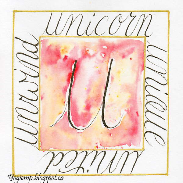 ID: wk 21 - u (unicorn, unique, united, unwind) Pointed pen, Sumi ink, watercolors, gel pen