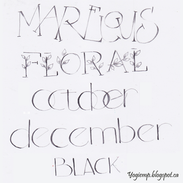 2023 Our Guild had Ann Purdy teaching us more about pencil work. She's such a fabulous pencil artist. She gave us 4 exemplars and I played with 3 of them. On Canson Pro Marker paper using various pencils (Caran d'Ache Grafwood & Blackwing) Words: Marvelous, Floral, October, december & Black