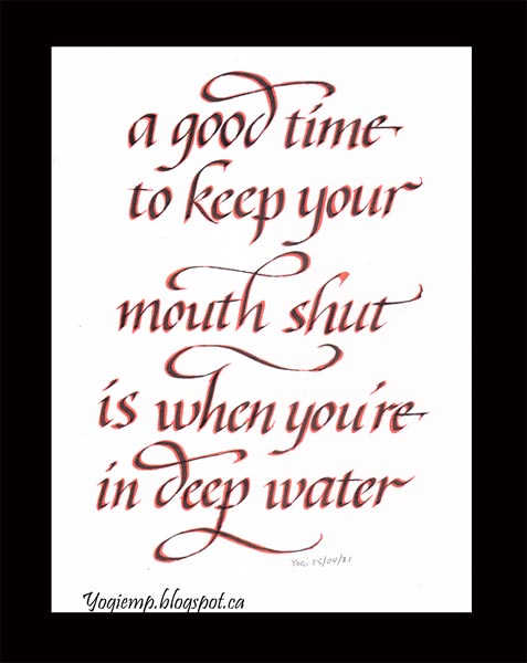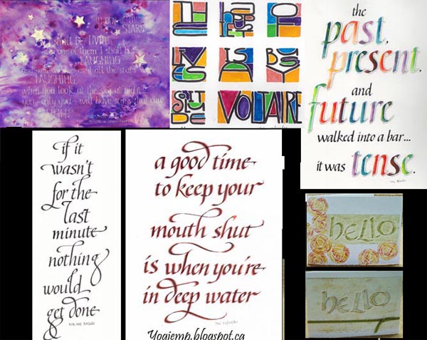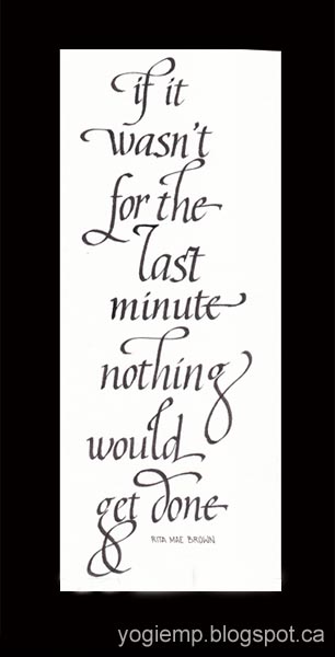 ID: wk 16 - Practice - Last Minute Italic and flourishing - 2 of the hardest things for me to learn so far. But after Barbara Close's Italic class I'm feeling more confident. Things are looking a little more consistent, the flourishes I'm starting to like... I love this quote. Someone in class quoted it and I had to write it down... Arches Text Wove, 2.4 Parallel pen and Sumi ink