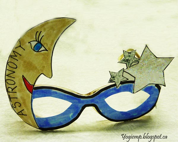 ID: Wk 23 - Astronomy Since our Guild wanted us to wear a mask to celebrate our Year End party... I said to myself lets make an astronomy mask and satisfy 2 challenges with one artwork. BIG GRIN I just traced my glasses onto cardstock and drew the images and word, then painted with Tombows, added glitter to the stars and cut out leaving a piece on either end to wrap around my glass arms. Voila. |