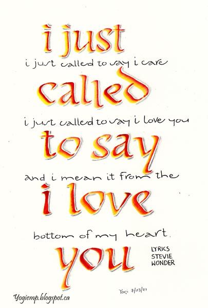Wonder On Bee Super Deluxe paper, double dipped my Simply Simon #6 Chisel paint brush into W/N watercolors Transparent Yellow and Alizarin Crimson and wrote my main words in a kind of Bone style lettering. The rest of the song words with a black Zig Writer in Akim style. Added graphite and paper stump shadow. Lyrics: |