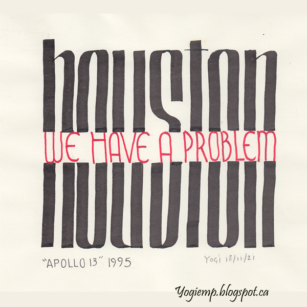 ID: Wk 46 - One Liners - Houston Size: 6" sq There are so many fabulous one liners - how do you choose... On Genoa bond paper and using a 6,0 Parallel pen with Sumi ink, wrote out the word Houston in an extended lettering style and then the rest of the "one liner" with an Artistro red pen in monoline. |