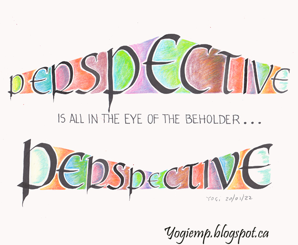 ID: wk 3 - Perspective On 110# misc cardstock wrote out the words using every size of Parallel pen and Sumi ink in a Perspective view. Used Prisma colored pencils in the negative areas. Wrote out the rest of the text with a Zig writer.