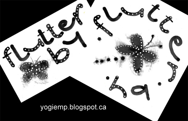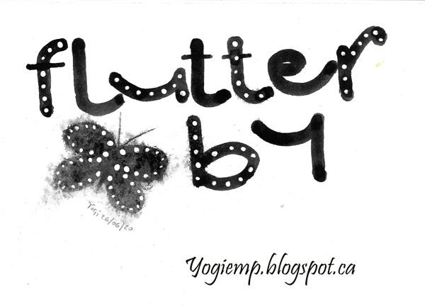 ID: Wk 26 - Limitations - Flutter By 1 & 2 On Bee Deluxe Paper using b-0 nib and Sumi ink wrote out my word and the butterfly. When dry, protected the words and misted the butterfly with water. Used a b-3 nib for the cross bars and dots (Bleed Proof White). On Staples 110# white cardstock used my We R Memories circle cutter but with a pencil to draw a large circle. Using the same nibs and ink as #1. Misted with water as #1. |