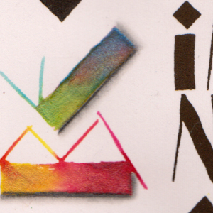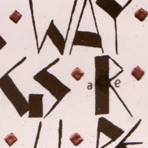 2012 This piece won a 2nd place ribbon. I love doing Funky and decorative Neuland type letters. I lettered the larger letters with a Parallel 6.0 pen and water and dropped in Twinkles H2º watercolors on 90# Arches Hot Pre3ss watercolor paper. When dry, used a 2B pencil and lined one side of each letter, then used a paper stump to create the blended shadow (see detail below). The central text was done with a 3.8 pen and the black ink cartridge. The separation squares were done with a 2.4 pen and a brown tone of Twinkles, when dry went over it with the same pen and some squeezed out Perfect Medium on my craft sheet, then embossed with Copper embossing powder. The words "you" and "are" were altered to be just the "U" and "R" and then I wrote in very small .01 micron pen the rest of the word (see detail below). The quote: Be content with what you have. Rejoice in the the way things are. When you realize there is nothing lacking the whole world belongs to you. Lao Tzu |