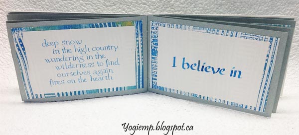 Arches Text Wove for the hand written text written with a pointed pen or a 2.4 Parallel pen in a Foundational style lettering using Holbien gouache (Peacock Blue mixed with Rich Gold). These pages adhered to a decorative layered Geli print on Text Wove using Golden's Fluid Acrylic (Iridescent Bright Gold) and Stamp Oasis Luna Lights "Blue". A texturing tool used to add the plaid design. This was then adhered to the Canson Ingres (Sky Blue) pages. The book cover and box made from Stonehenge white heavy weight paper and embellished with the Ingres and decorative papers.