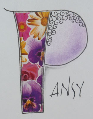 This is something I soooo don't do, but like the end results... We drew our template stroke on a piece of paper on the front and then traced it on the back. Applied various stickers in a collage design, then using the back drawn out stroke to cut our stroke shape. adhered it to our letter. I blended some Pebbles Pearlescent chalks in the bowl of the "P" and then doodled. |