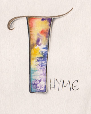 I so love alcohol inks and doing on Yupo is wonderful. We again did a larger piece and found an area to use for our letter. I skimmed the edge with a Krylon gold leafing pen. I used the Krylon pen to make the rest of my letter as well, then doodled with a Micron pen. I used my pointed pen and an ArtQuest palette to do the border. |