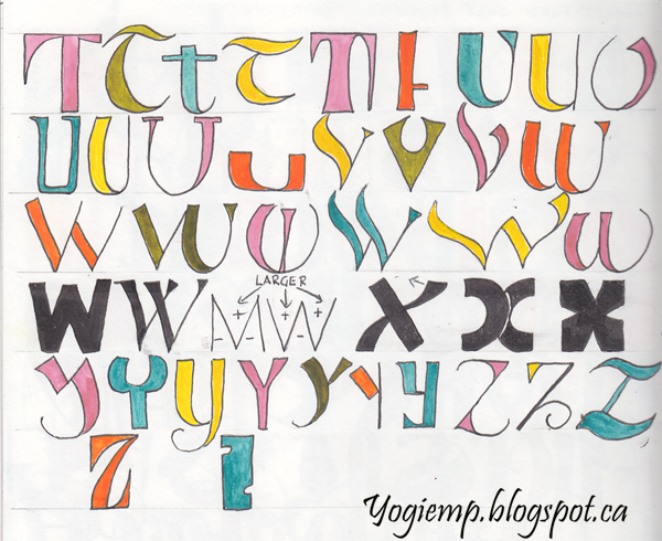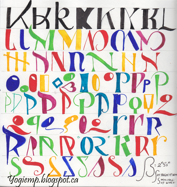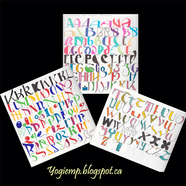 2022 I took another ZOOM class with Benoit Furet this time creating multiple variations of each letterform. In my Bee Super Deluxe journal drew the letters, outlined some with Micron pen. Colored some with Pilot Frixion markers (A - E), some just kept black and others painted with wtercolors.