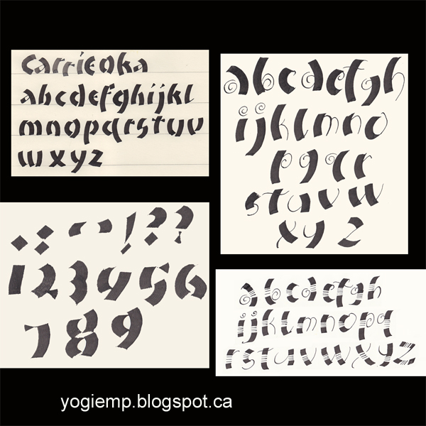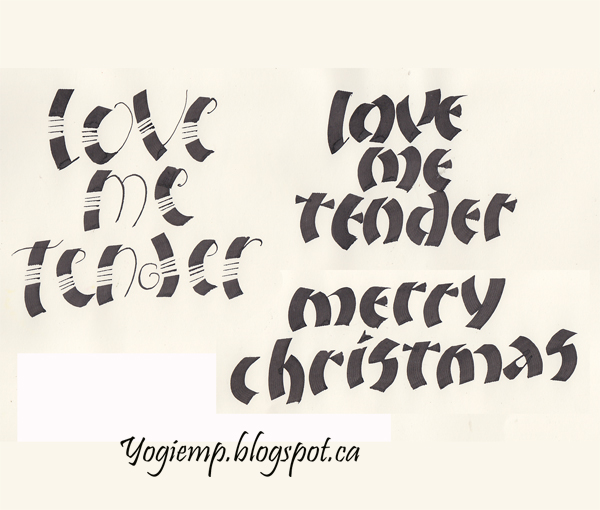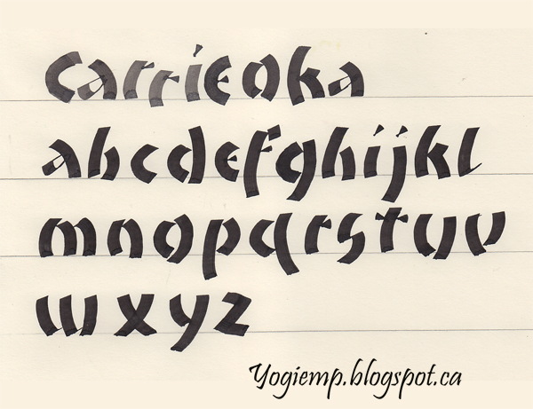 After practicing the basic letterforms Carrie had us do a few pieces with multiple words. I used mainly a 4.5 parallel pen and Sumi ink |