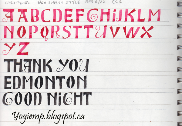 2022 The Edmonton Calligraphy Society hosted Cora Pearl with Ben Shan Style On Bee Super Deluxe paper, 3.0 parallel pen and Ecoline "Carmine" and Sumi ink.