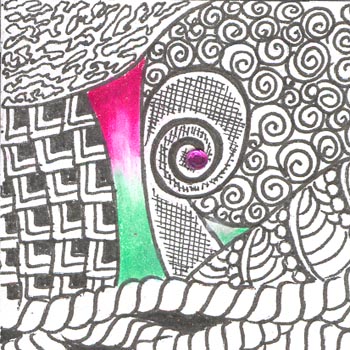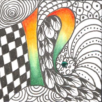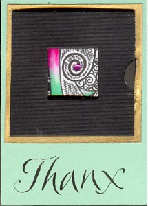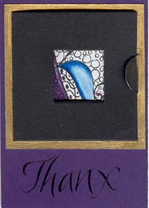 I decided to make Thank you ATC's for each player. I recently came across Zentangles and am having fun with them and went off on a tangent doing a calligraphic letter and using a bit of colored pencil detail work. This is a continuation of the 1st page. |