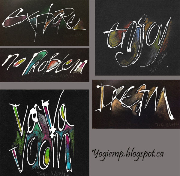 EXPLORE: Recollections , black c/s, colored with Faber Castell Metallic colored pencils. NO PROBLEM: Recollections , black c/s,colored with Prisma colored pencils. VA VA VOOM: Recollections , black c/s,colored with Prisma colored pencils. DREAM: on black Stonehenge paper and Metallic Pan Pastels applied with a small makeup sponge ENJOY: on black Stonehenge paper and colored with Pitt Pastel pencils. |