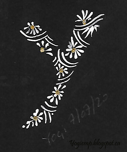 Decorated "Y". Penciled in my "Y" letter on black Recollections cardstock and then using a Zeba G nib and Bleed Proof white ink created my design elements within the lines. I really like creating this kind of letter...
