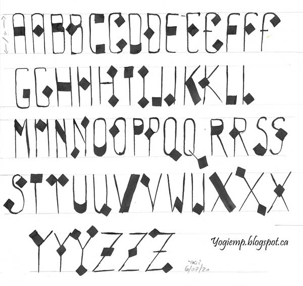 since I've done an alphabet based on a rectangle I figure I'd try one based on a circle... Using a circle template (1/2") created this alphabet. It's got potential for adding dots and diamonds for decoration... |