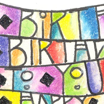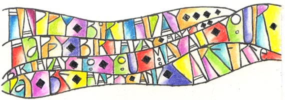 To make life easier, I usually cut out a stencil from some scrap solid plastic in the shape of the rectangular section of the letter. I make it a bit longer to take into account the angels of some letters, which I draw in by hand later. This ensures all the rectangles are the same size... BIG GRIN. I like trying all types of coloring mediums to decorate my letters and I've made the exemplar so I could look back and it would jog my memory or spark a new idea. All the letters were first drawn in with a light pencil, then I went over the lines with a Zig black marker, then erased all my pencil lines. |