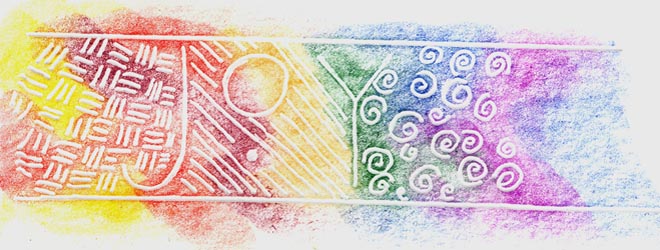 This is done on the white cardstock using a small tip stylus and then using the flat of the colored pencil (Prisma Colors) to lay in the color. |