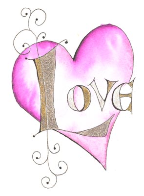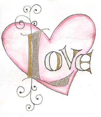 Can you see the difference between the two hearts? the one on the left was real nice until you see the one on the right which has more depth. Just by adding a touch of black shading and a deeper shade of magenta in some areas, makes the heart feel plumper. I used a Quickie Glue pen and Glitter Ritz micro fine glitter in Gold, Silver and Warm Highlights. Flourishes are done with a Micron pen. |