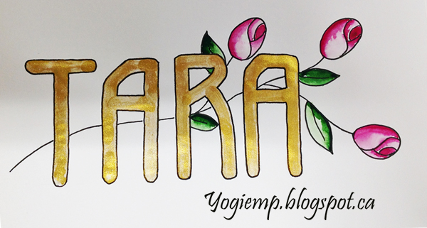 ID: Tara Our Guild was donated with a bunch of lovely paper from a business that was moving. As a thank you we were asked to write the person's name that allowed the donation. Since I was in Gemma's class I thought I would use what I learnt. BIG GRIN. I used the largest "B" nib and Gansai Tambi "Starry Nights" watercolors. I can't remember which color I used... When dry outlined with a fine tip of the Zig Writer. Drew in the roses and painted with watercolors. |