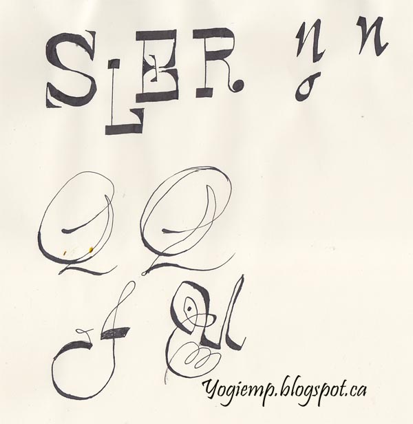 white Misc letters with a Parallel pen or pointed pen, basically hand drawn