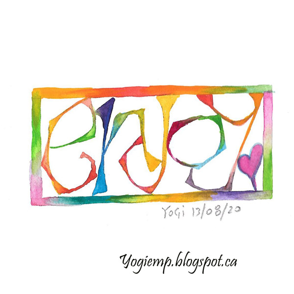 ID: Enjoy Penciled my letters on calligraphy practice paper, adding the angular sections. l Painted with Winsor and Newton watercolors. |