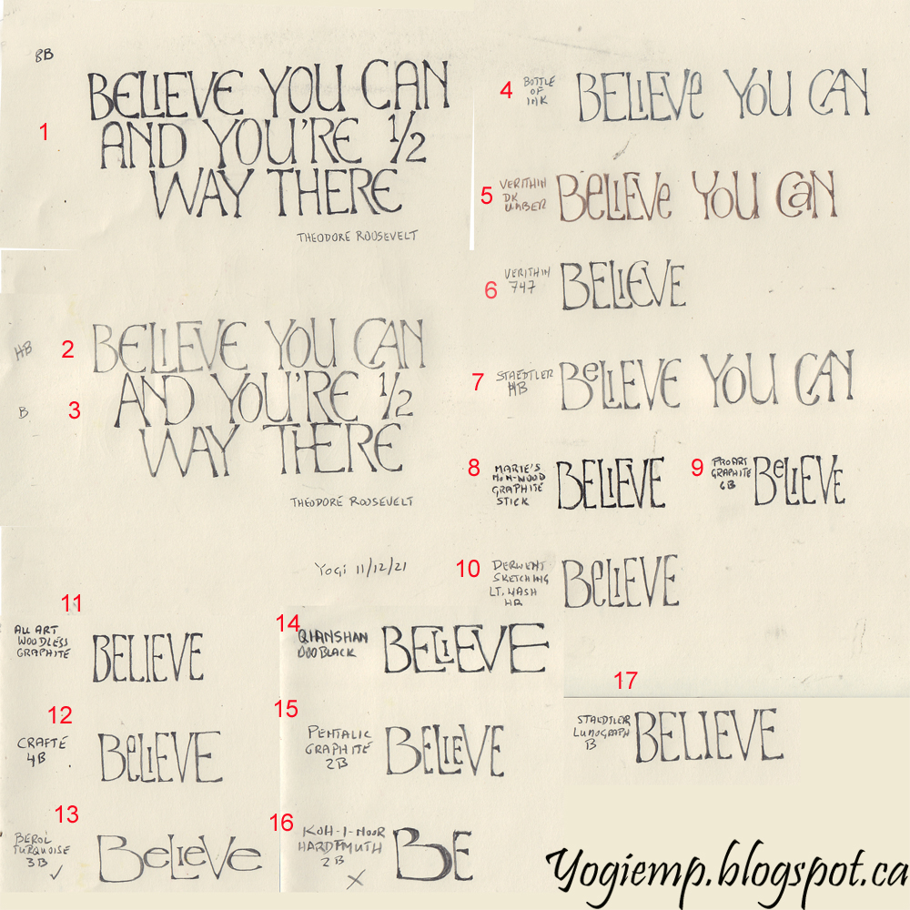 Trying out various pencil I have 1) Caran d'Ache 8B 2 & 3) Caran d'Ache HB & B 4) Bottle of Ink 5)Verithin - Dk Umber 6) Verithin 747 7) Staedtler HB 8) Marie's Non - Wood Graphite Stick 9) ProArt Graphite 6B 10) Derwent Sketching Lt Wash HB 11) All Art Woodless Graphite 12) Crafte 4B 13) Berol Turquoise 3B 14) Qianshan 000 Black 15) Pentalic Graphite 2B 16) Koh-i-Nor Hardmuth 2B 17) Staedtler Lumograph B My favorite was #13 and least favorite #16