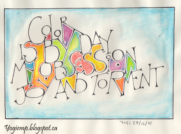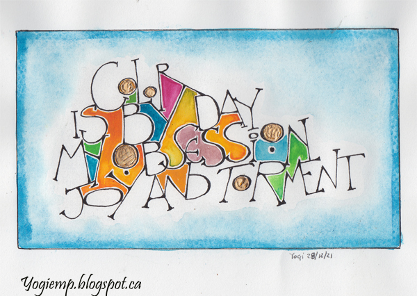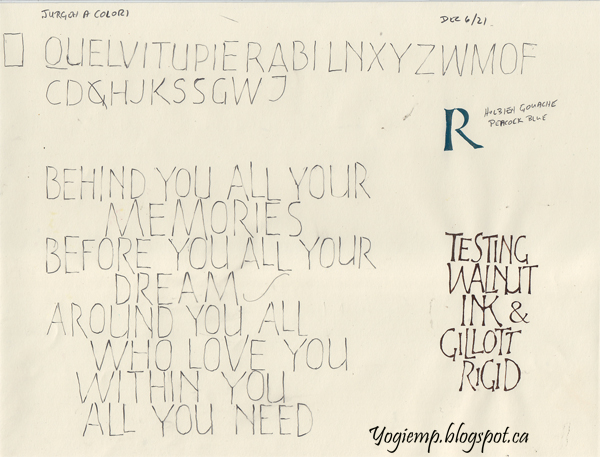 Day 4: Color Is By Day On Arches 90# HP w/c paper drew out my quote using a .03 Micron pen. Painted with Winsor & Newton watercolors. Added 23K gold leaf in the "O's" using Instacol adhesive. The piece below is done on Genoa Bond paper as a draft. |