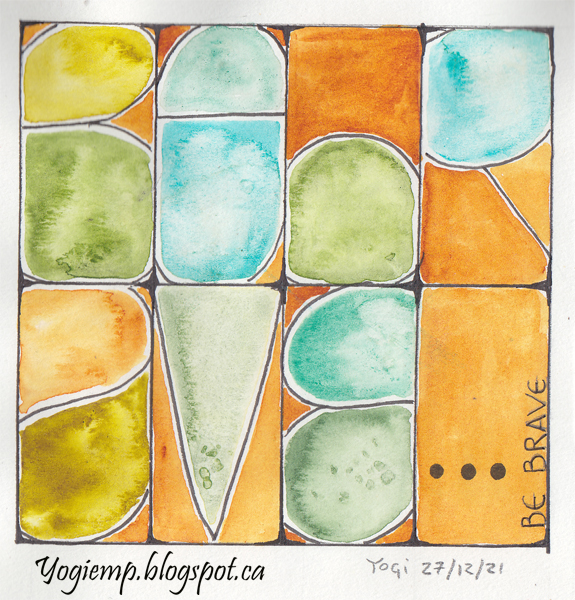 Day 4: Be Brave On Bee Super Deluxe paper drew my 2" x 1" rectangles. Painted with QoR watercolors in various greens, dropping in some coarse salt for texture.