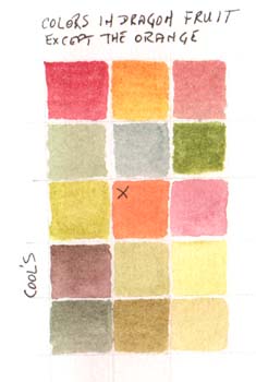 we were asked to bring a fruit or flower or some organic item or photograph of one, so we could dissect the colors within it and try to reproduce them... I choose a dragon Fruit. I love the taste of them and Love the colors. I came pretty close to getting a lot of them, except for that orange in the middle - none of that in my fruit.
